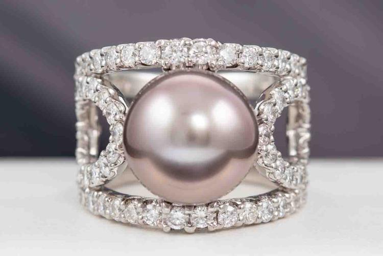 12.1mm Tahitian Pearl & Diamond Ring
