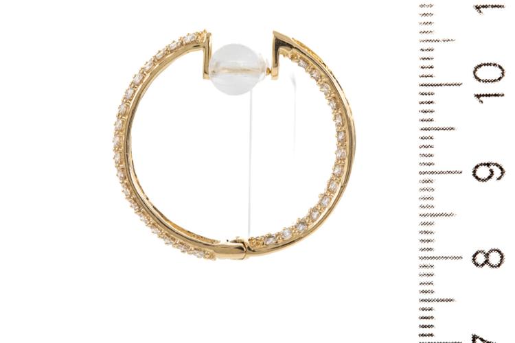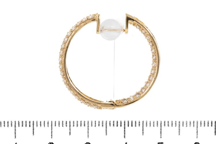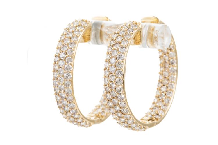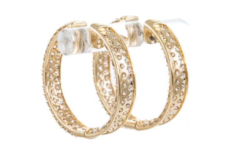 Diamond hoop earrings with 196 round Natural Diamonds totalling 4.08cts (Estimated grading: H-I SI-P1). 14ct yellow gold. Back of the hoop has the Diamonds set inside the hoop. Weight: 7.9g With Valuation Certificate #417690. (New).