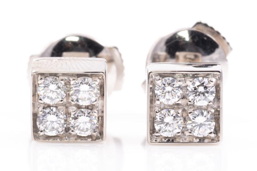 Bvlgari Lucia Diamond earrings with round Diamonds totalling 0.48cts (Estimate grading: F-G VS). 18ct white gold. Made in Italy. Weight: 3.6g. (Pre-owned)