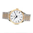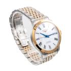 Longines Record 18ct rose gold and stainless steel automatic mens watch. White dial, date, case diameter: 38.5mm, wrist size: 20cm, Swiss Made. Ref# L2.820.5.11.7. With Longines two-tone bracelet and clasp. With FSA Certificate of Authenticity and Longines box. 3 month FSA warranty. (As new, NOTE: very light wear marks present due to being display stock)